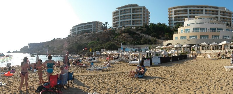 We went to the Golden Bay, after we’have already been at Ghajn Tuffieha, unfortunately Golden Bay wasn’t that nice, the water was full of seaweed. We have tried the water, but it was difficult to get out of the lot of seaweed, we had to go far into the sea. I must have admit the water is clear though, far in where the water was deeper, we still saw down to the bottom and we still saw the seaweed